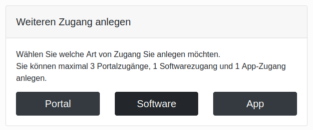 Klicken Sie in ParcelSticker in der Menüleiste auf Konto, Benutzer. Dort legen Sie einen „Software“-Zugang an.